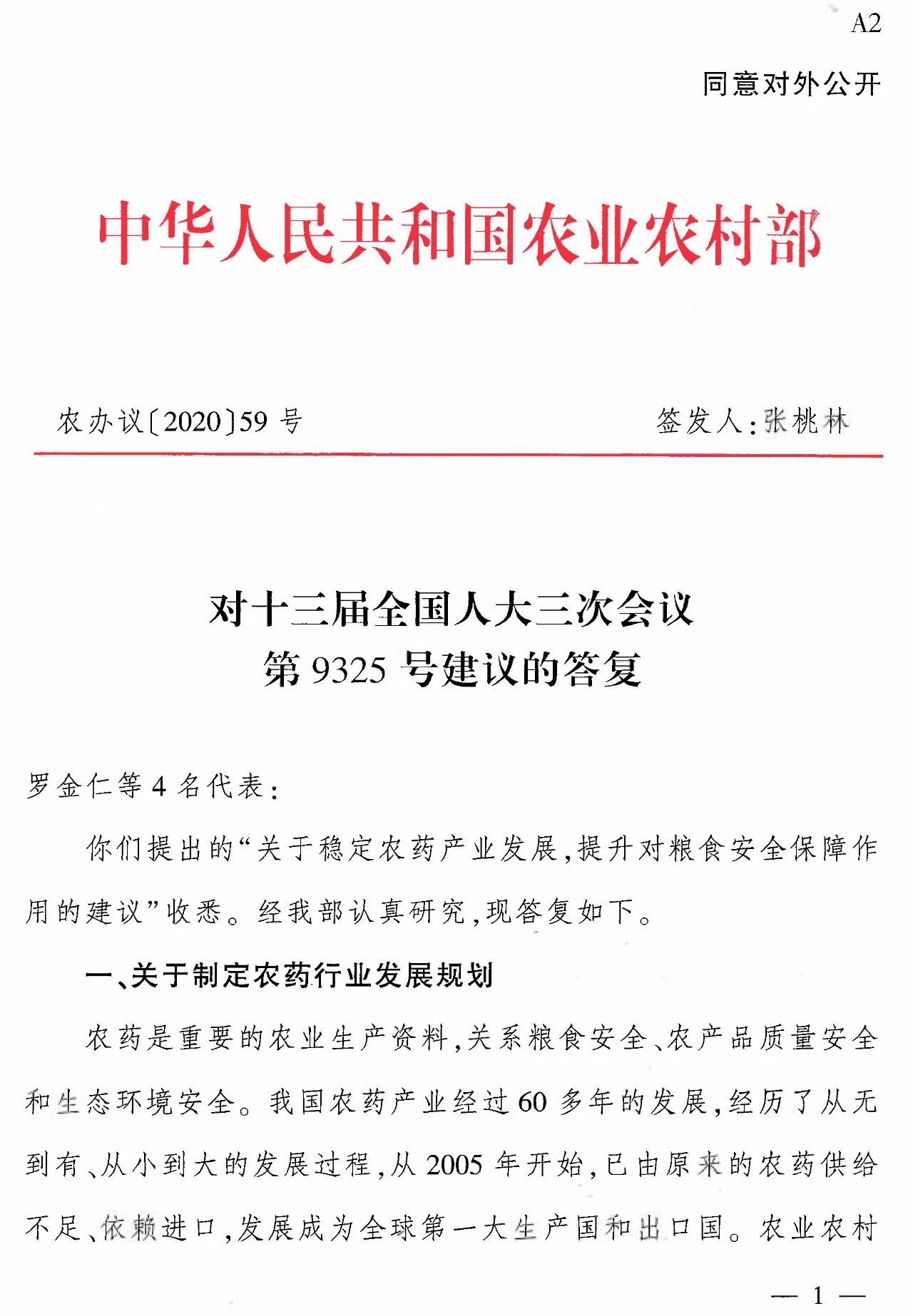 你們提出的“關(guān)于穩(wěn)定農(nóng)藥產(chǎn)業(yè)發(fā)展,提升對糧食安全保障作用的建議”收悉。經(jīng)我部認(rèn)真研究,現(xiàn)答復(fù)如下。?