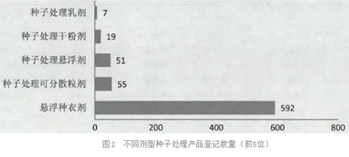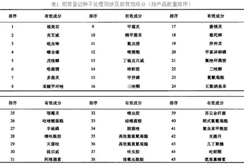 ??? 現(xiàn)有登記的種子處理劑中,含有福美雙、吡蟲啉、戊唑醇等老品種的產(chǎn)品占有較大比例,且含有克百威等毒性級(jí)別較高有效成分的產(chǎn)品也占有一席之地,產(chǎn)品結(jié)構(gòu)有待調(diào)整。另外,種子處理劑以混劑登記為主,登記數(shù)量在前20位的配方中,復(fù)配配方有13個(gè),包括9個(gè)二元復(fù)配、4個(gè)三元復(fù)配。隨著近年來(lái)新引入有效成分的逐漸增多,如新型琥銪酸脫氫酶抑制劑、酰胺類殺蟲劑、微生物制劑以及植物生長(zhǎng)調(diào)節(jié)劑等,為種子處理劑的優(yōu)化升級(jí)提供了更多的選擇。