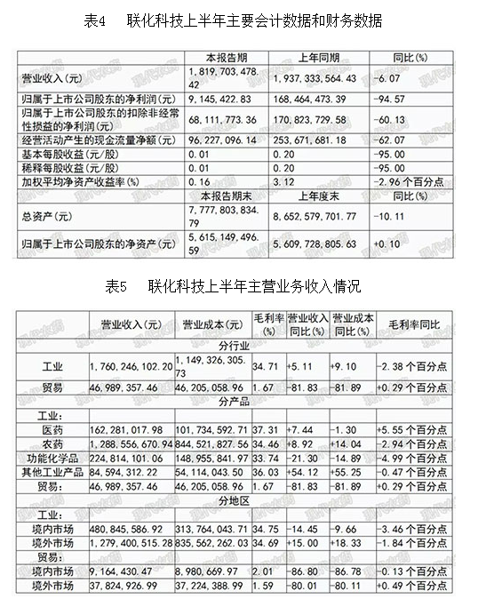 子公司停產(chǎn),聯(lián)化科技營收凈利潤雙雙下跌