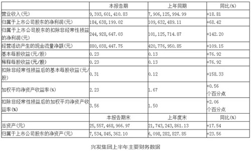 ??? 湖北興發(fā)化工集團(tuán)股份有限公司(下稱興發(fā)集團(tuán))2018年半年報顯示,化工行業(yè)景氣度穩(wěn)中有升,公司總體經(jīng)營態(tài)勢持續(xù)向好,盈利能力顯著增強。2018年上半年實現(xiàn)營業(yè)收入93.94億元,同比增長18.81%;歸屬于上市公司股東的凈利潤為1.85億元,同比增長68.42%。