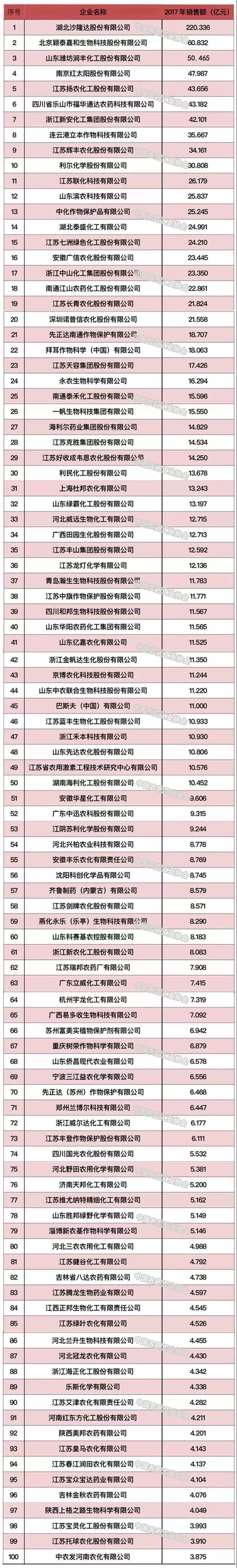 2018中國農(nóng)藥行業(yè)銷售百強(qiáng)榜發(fā)布