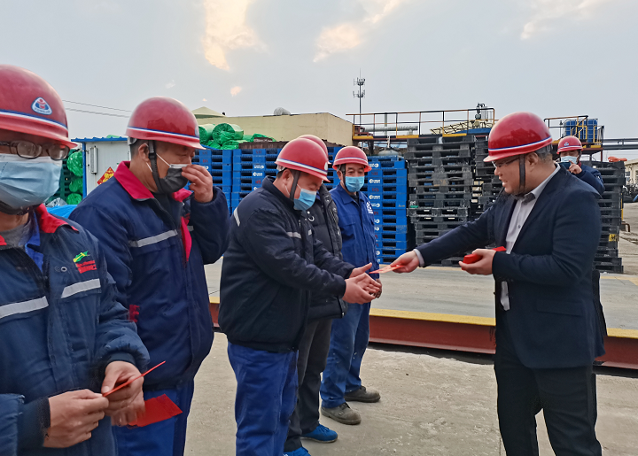 “新年好,大家辛苦了,祝大家新年快樂(lè)!”1月22日下午,總裁來(lái)到恒寧車(chē)間一線給大家拜年,并將新年紅包發(fā)放到堅(jiān)守崗位的干部員工手中。