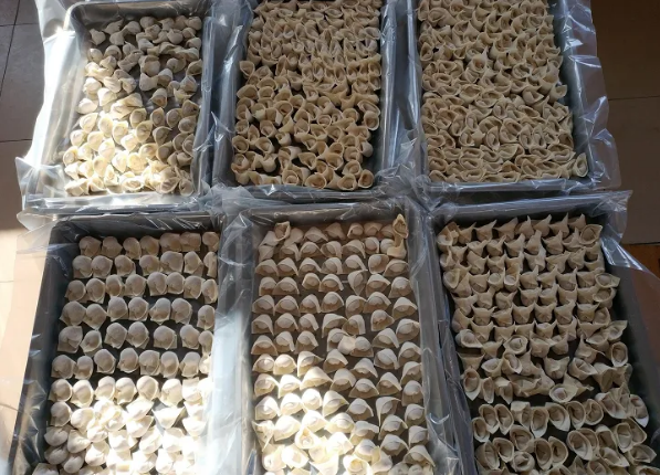 ? ? ? ?冬月初三當(dāng)天,幸福餛飩活動(dòng)全面落地。參與包餛飩活動(dòng)的女員工居多,從現(xiàn)場(chǎng)來(lái)看,女員工個(gè)個(gè)都是居家小能手,包餛飩又快又好,餡料足、個(gè)頭大,花樣百出。尤其是人力行政科的王翠姣,包的餛飩像一個(gè)個(gè)銀元寶,三車間的姜寧包出了玫瑰花餛飩,十分有食欲。經(jīng)過(guò)2個(gè)小時(shí)的準(zhǔn)備,一盤盤餡料在大家的巧手下變成了一個(gè)個(gè)餛飩,足足4000多個(gè)大餛飩整整齊齊的擺放在托盤里。