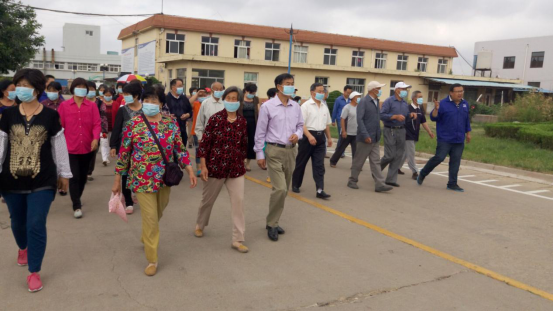 8點20分,我廠派出兩名職工分別到都霖馨苑小區(qū)和后田村小區(qū)迎接參觀居民。9時許,居民已全部到廠,并在工廠籃球場集合。