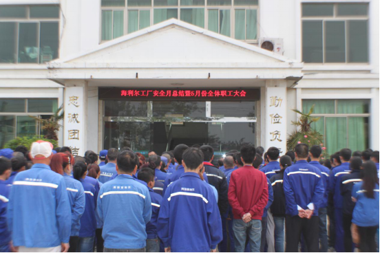 ? ? ? ? 2016年5月10日7點10分,青島海利爾工廠召開安全月總結(jié)暨5月份全體職工大會。人力行政科主任毛士偉主持會議。