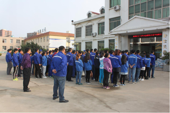 ? ? ? ? 孫廠長在講話中指出,工廠在接下來的生產(chǎn)中,要在保證產(chǎn)品質(zhì)量、安全、環(huán)保的基礎(chǔ)上,全力降低成本,杜絕一切浪費。在生產(chǎn)工藝中要加強創(chuàng)新,改善工藝,提高生產(chǎn)效率,降低成本和消耗。就4月份的產(chǎn)品質(zhì)量問題指出,誠信是我們的生存的根本,而產(chǎn)品質(zhì)量就是誠信的最重要的體現(xiàn),同時鼓勵大家將工廠的利益看做自己的利益。