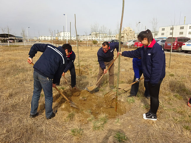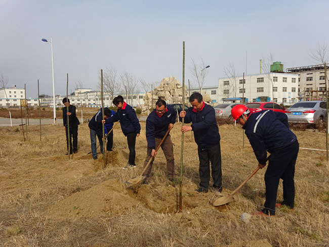 自進(jìn)入3月份以來,干部員工利用班前班后時間,在車間周圍、廠內(nèi)干道兩旁,廠前辦公區(qū)等地方,植樹210棵。兩年來累計植樹500余棵。