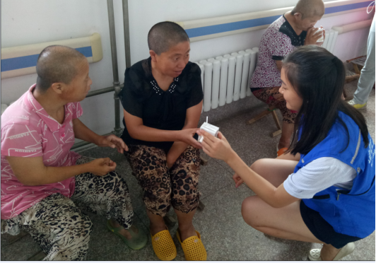 回想第一次來這里時他們的反應(yīng):見了生人無法掩飾的那種不安全感,和現(xiàn)在如家人般的情誼一比,心理不禁有些許的酸楚,他們雖然身殘但是也有著一顆火熱的心,渴望被關(guān)愛,希望被關(guān)心······